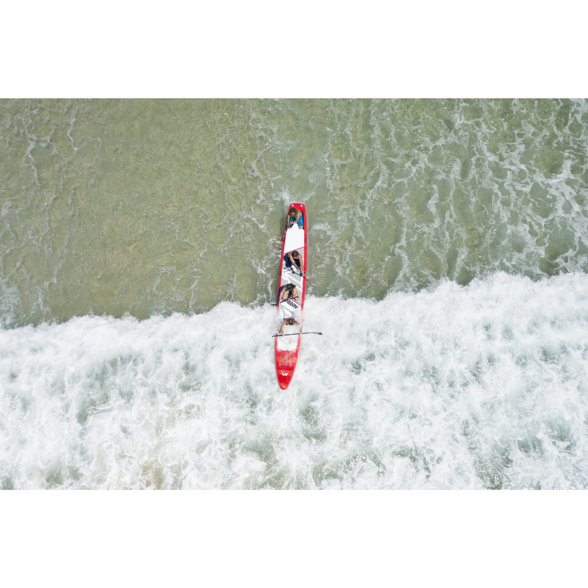 This is a true race board mixing extreme speed with team spirit. The streamlined narrow race outline allows riders to paddle very straight in the water for great tracking and incredible acceleration. The curved nose rocker and high sides make the 22-foot-long board rise out of the water and easily get through waves. The Airship Race comes with eight lateral neoprene carry handles for easy transportation and a quicker start in the competition. It’s a perfect speed machine for clubs to create team building, corporate events, or parties.