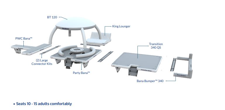 Our Banas™ can float by themselves or be connected to other products for maximum capacity, comfort, and convenience.
