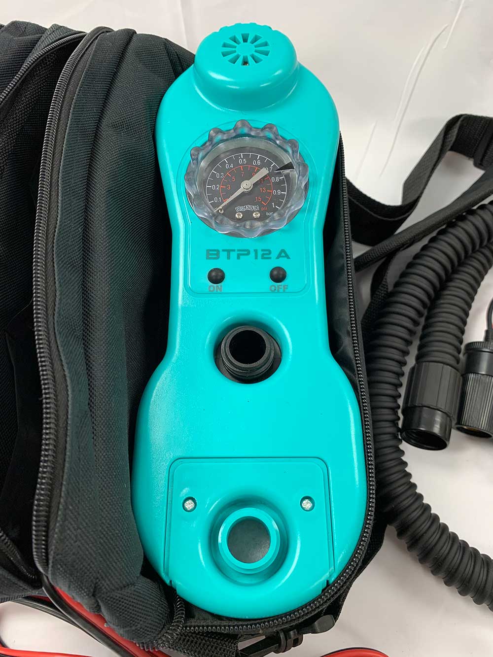 The Bravo BTP 12 High-Pressure Pump is the perfect solution for quickly inflating any AquaBana product.