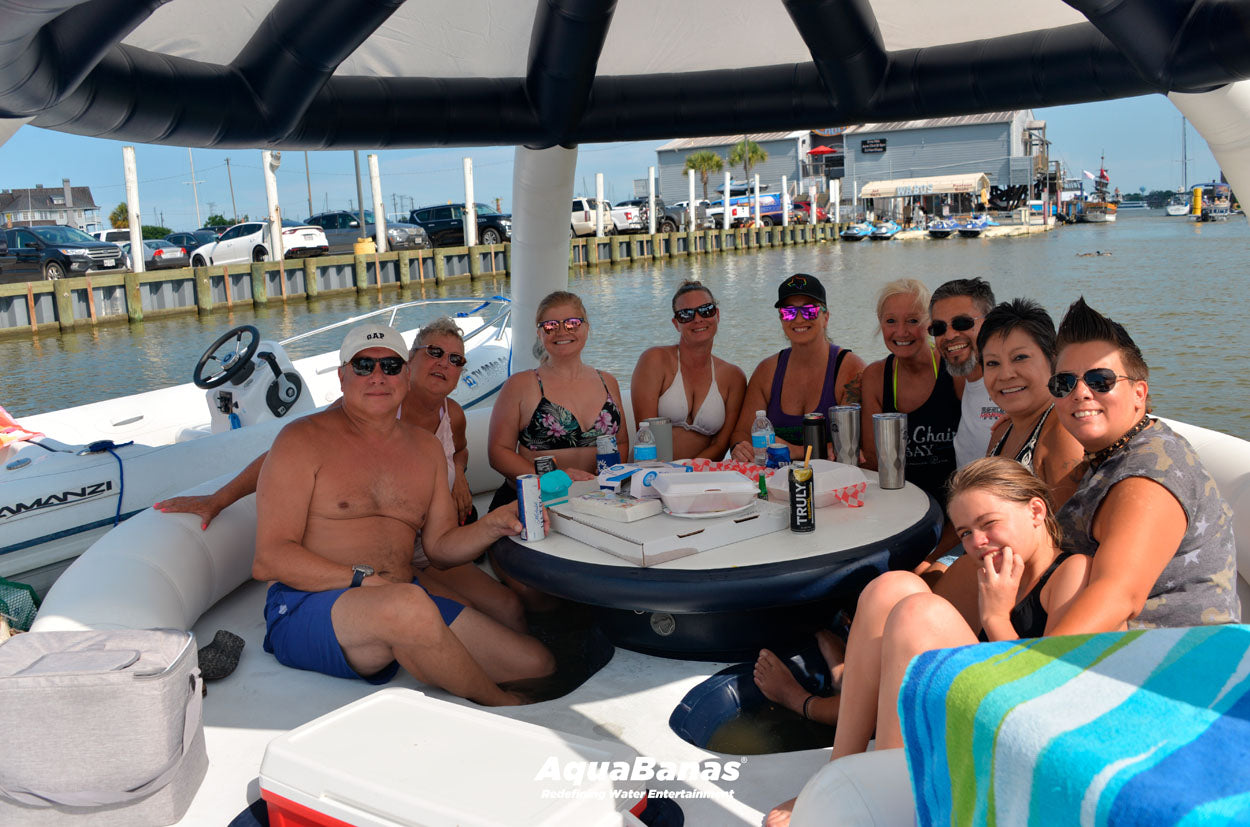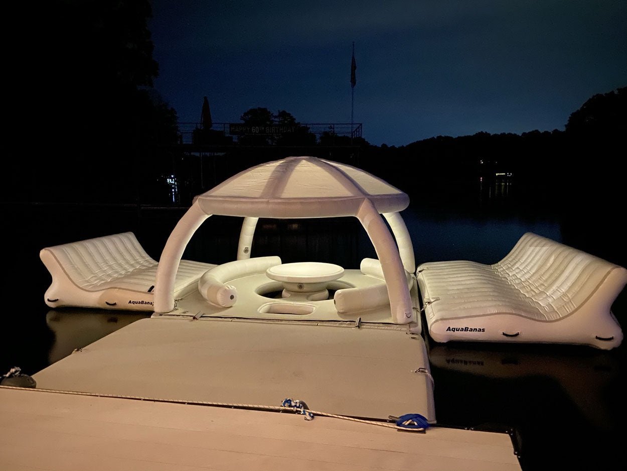 The first of its kind, Party Bana will change the way you relax on the water and features non-slip top surfaces, measures 11′ x 11′, and comfortably seats 8-10 adults!