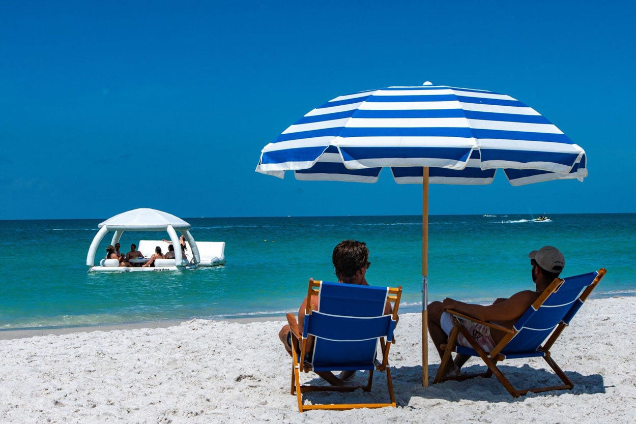 AquaBanas draw attention from anywhere on the water. The quick step access and non-slip surface make it easy for people of all ages to board and move around the Bana. It can operate in as little as 36 inches of water and provide amazing shade when combined with our BT-120 Bana Tent.