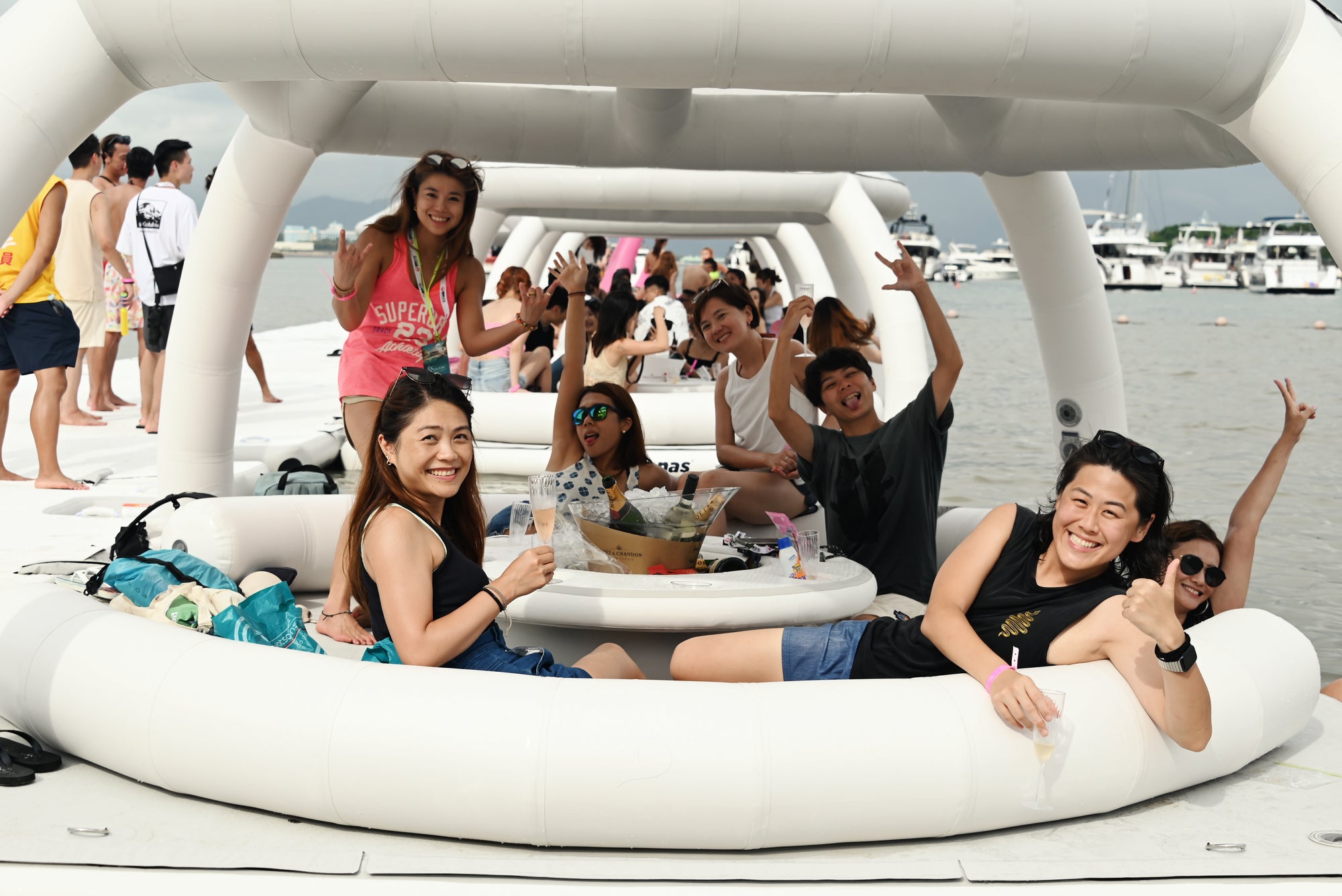 Keep the fun going with the line of inflatable decks, tents, pools, and loungers included with AquaBanas The Harbor Package. This package can comfortably accommodate more than 100 adults.