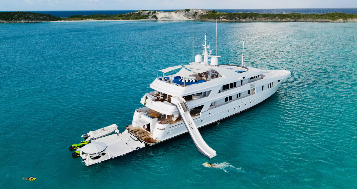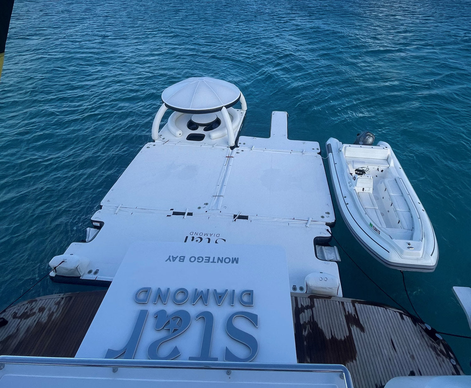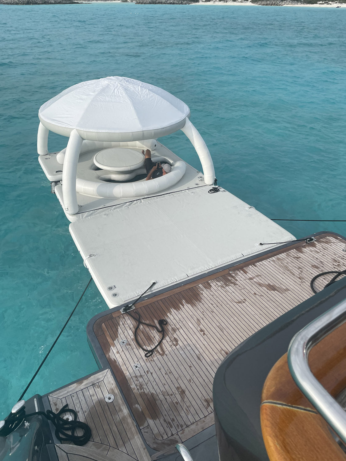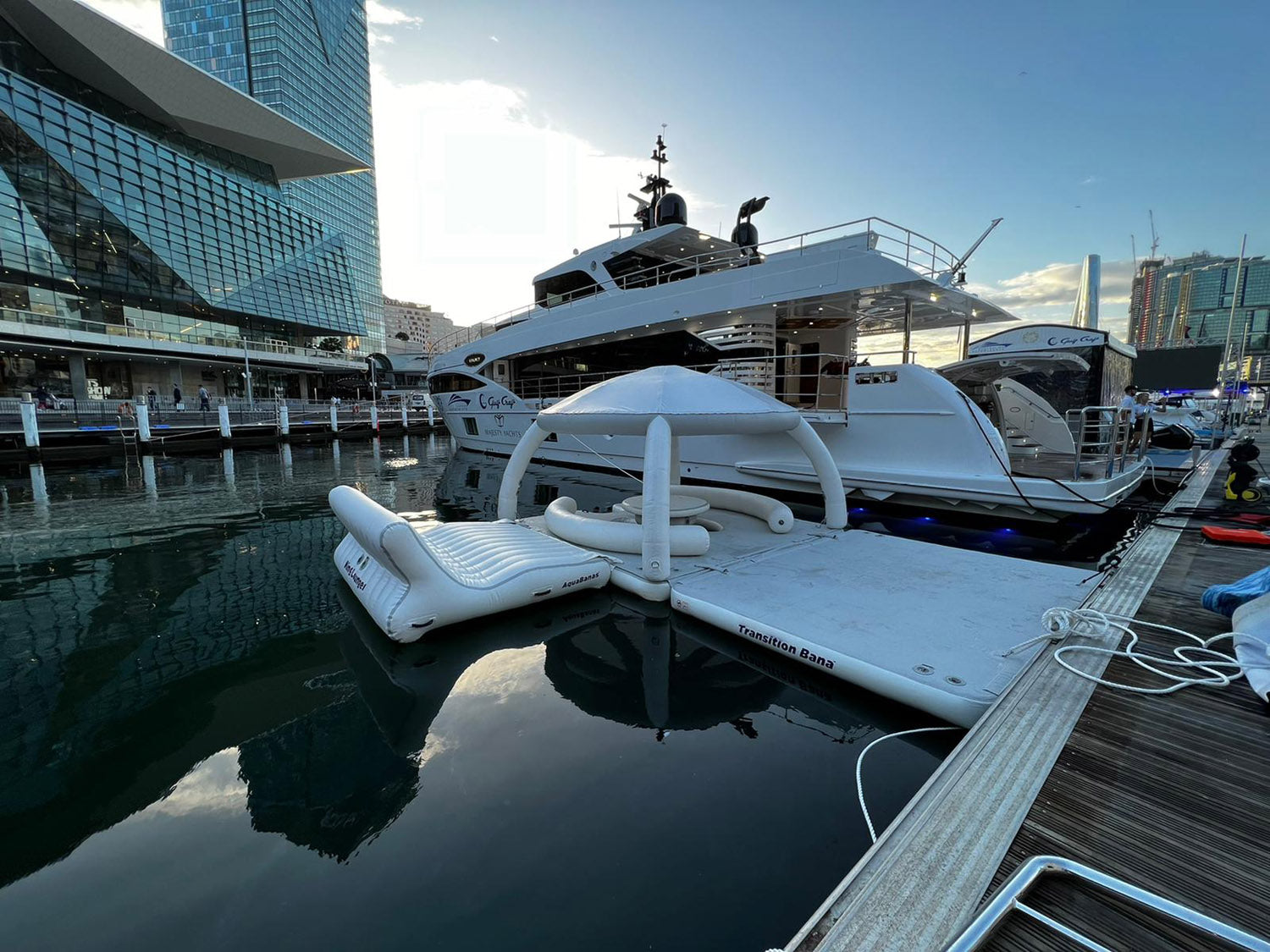 This Bana is part of our standard-built inflatable line and used to create distance between your yacht platform and inflatable(s). They can also connect water park systems from most major manufacturers. As a bonus, the Transition Bana has enough space for sunbathing, yoga, and other activities.