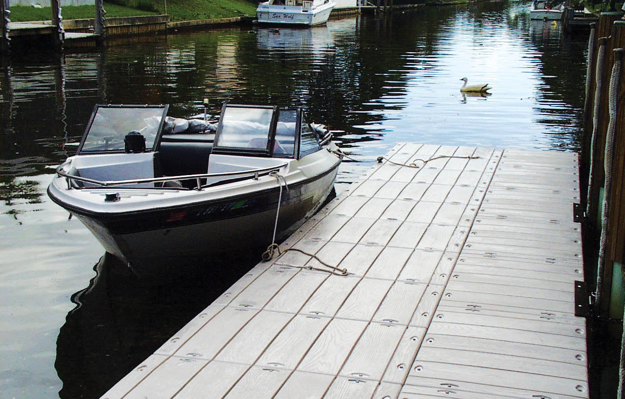 The lightweight float sections can be assembled with a wrench (in addition to anchoring). The environmentally safe polyethylene surface assures season after season of low-maintenance service. The UV-protected, puncture-resistant deck is color-molded with a slip-resistant surface that sheds water and the sun's extreme temperature.
