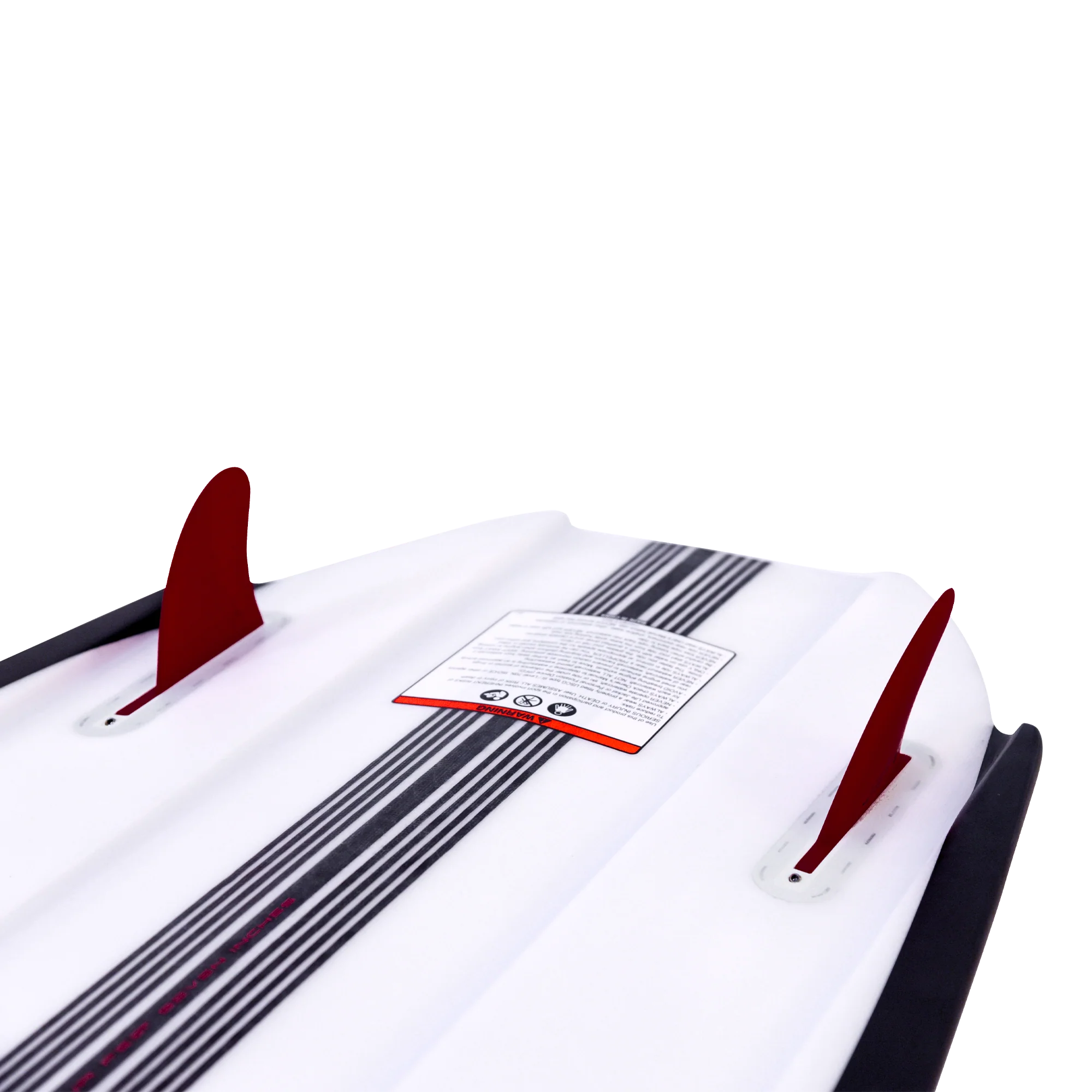 By far the most aggressive bottom shaping we’ve ever used on a surfer. The result is one of the most dynamic rides ever made that’s free and maneuverable at the top of the wave and has rocket boosting speed on bottom turns. The twin fin setup minimizes drag for chasing the pocket and breaks free off the lip. An aggressive wing feature off the rail breaks the flow of water in the tail for lightning fast maneuverability.