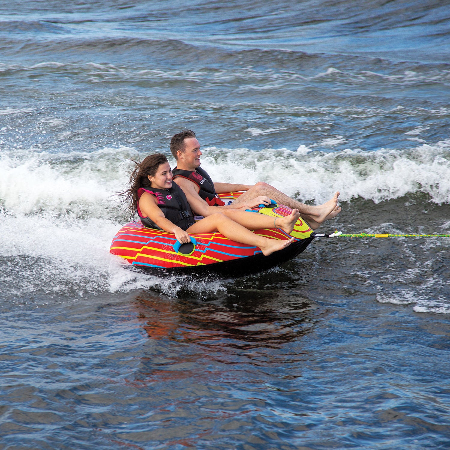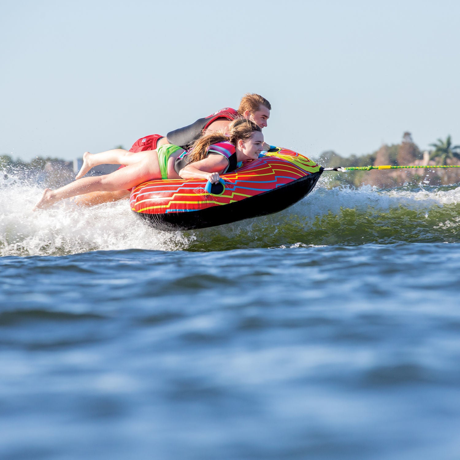 The Connelly Wing Two Towable Tube 2 Rider is deck style towable tube for two riders. Team up with a friend with this economical, two-rider tube with side-by-side seating!