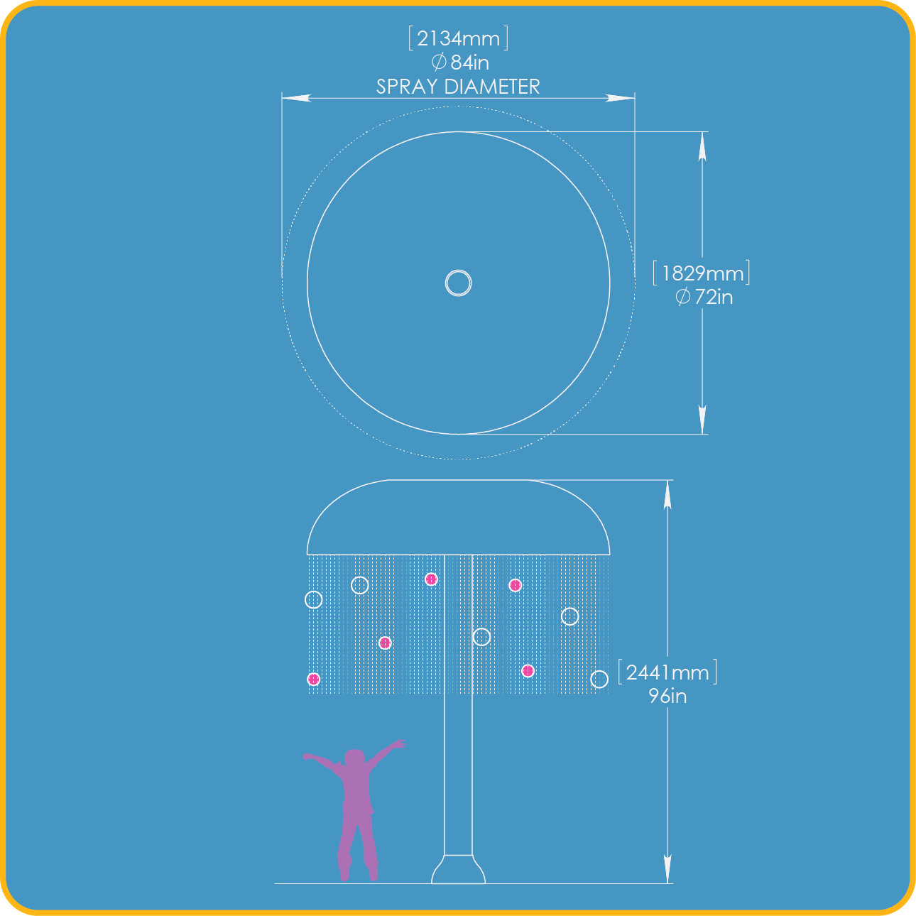 ☑ Spray: 84in (2134mm) Spray Diameter