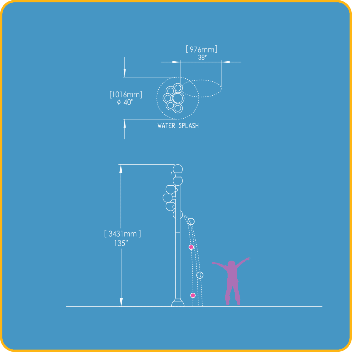The Aquacinco is a spray feature which is suitable for shallow pools and spray park applications with no standing water. There are no moving parts and simple interaction for the players is with the water flow alone. A piped in water source is required.