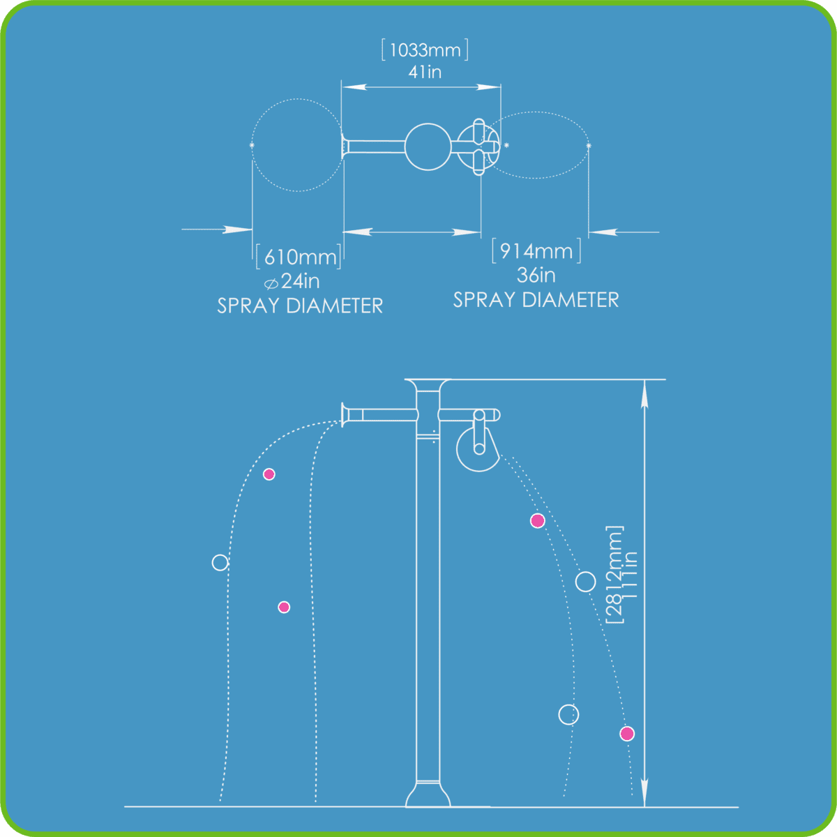 ☑ Spray: 24in (609mm) & 27in (691mm) Spray Areas