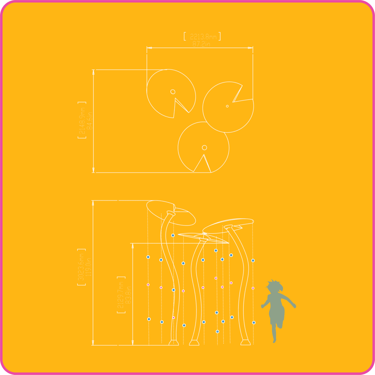 The Aqualotus Trio is a spray feature which is suitable for shallow pools and spray park applications with no standing water. A piped in water source is required.