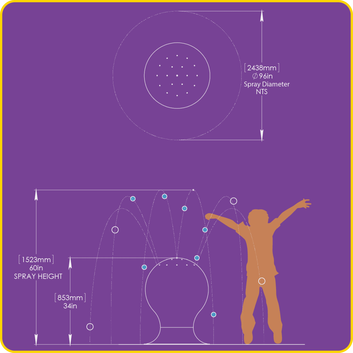 The Aquasphere Mini is a spray feature which is suitable for shallow pools and spray park applications with no standing water. A piped in water source is required.