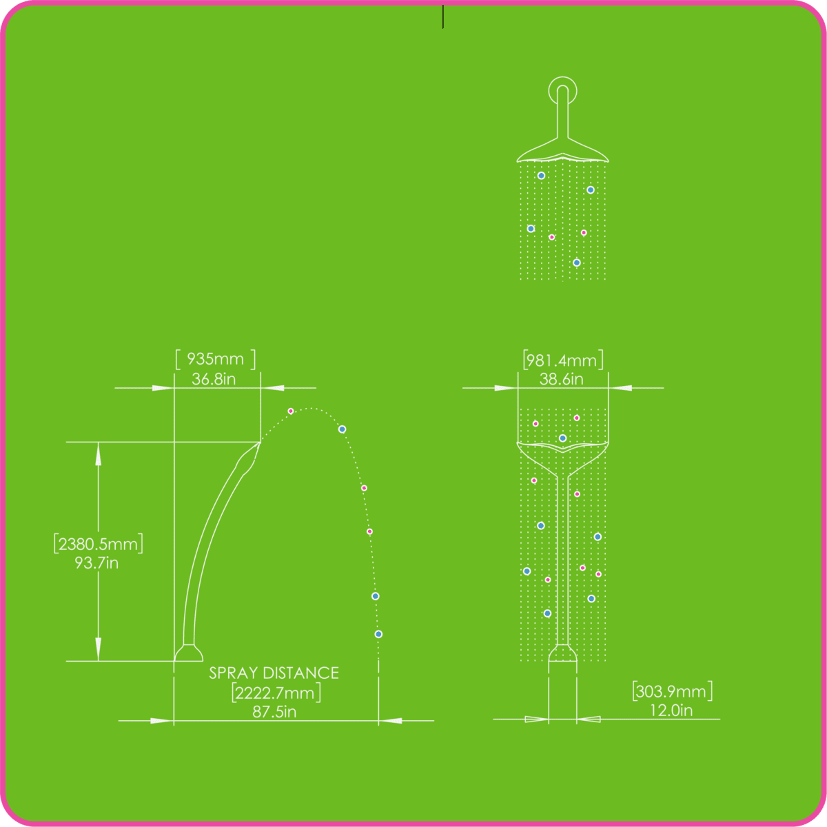 ☑ Spray: 87-1/2in (3048mm) Spray Distance in front of toy