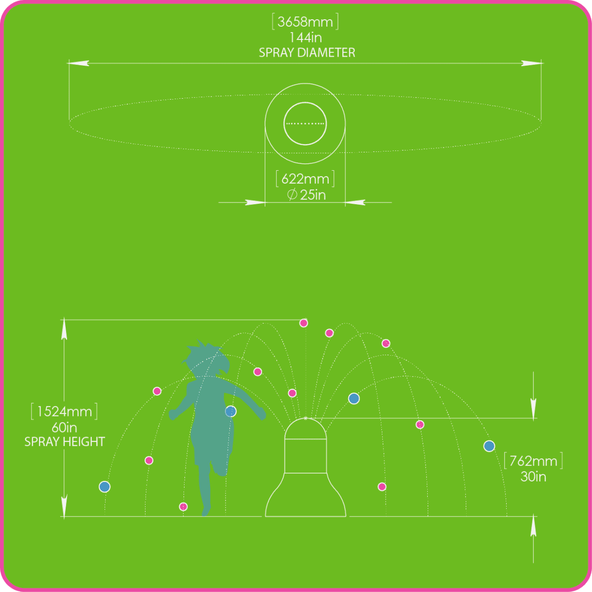 ☑ Spray: 144in (3660mm) Spray Diameter