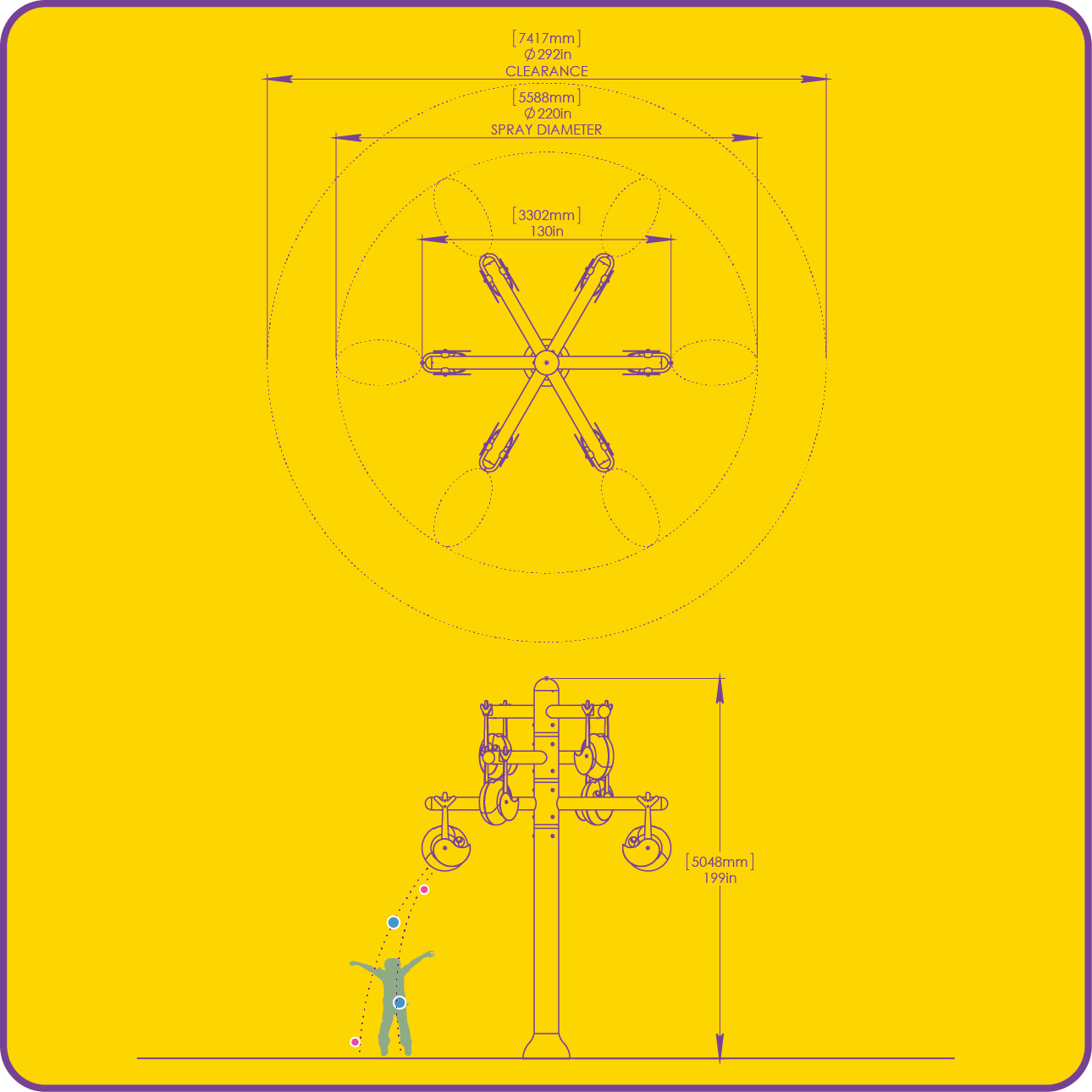 ☑ Spray: 220in (5588mm) Spray Diameter