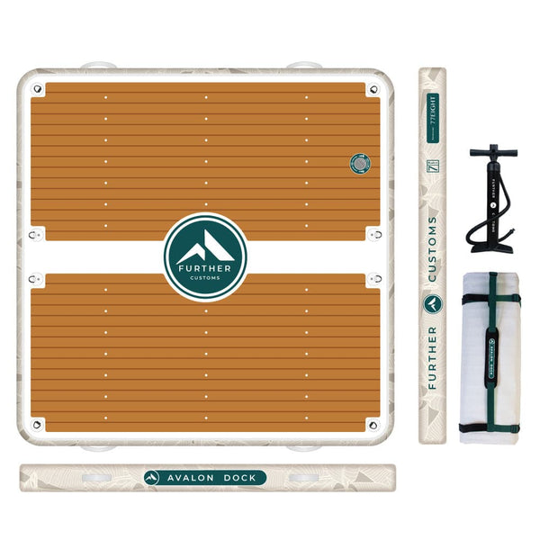 The Avalon Dock inflates to a 7' x 7' swim platform that is 8 inches thick, providing forty-nine square feet of area to lounge on any body of water!