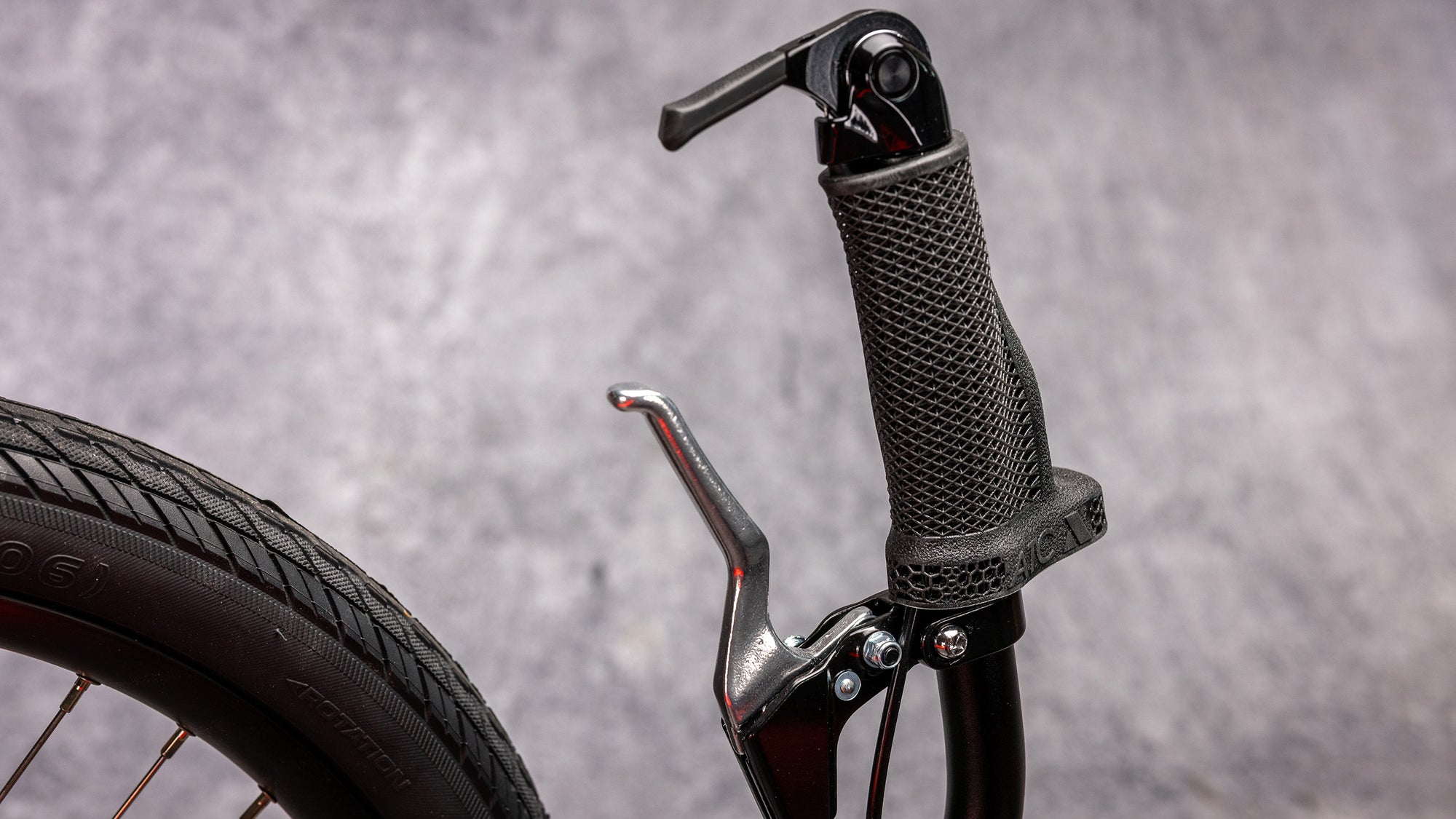 True control comes from your connection points being in the right place for you. The handlebars allow for easy width adjustment (broad or narrow shoulders) and angle adjustment (long or short arms). They can also be laid down when folding the trike to its smallest size.