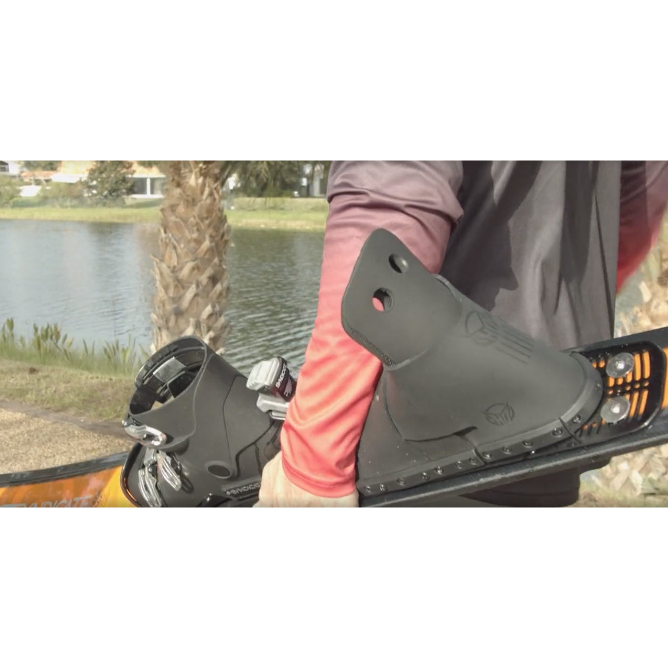Skiers enjoyed the softer feel of the Venom as a rear boot to compliment a stiff front boot. For 2021, we've taken that vision of optimized back boot performance and developed it further. We employed a Soft Natural Rubber toe and heel and combined it with a Thin Natural Rubber overlay. Furthermore, we designed a Low Drag Wrap Configuration, with tucked away connection points, thereby virtually eliminating where the back boot traditionally catches on the water. The result is a sleek rear slalom boot that doesn't catch on the water, allowing skiers to better maintain speed in the course.