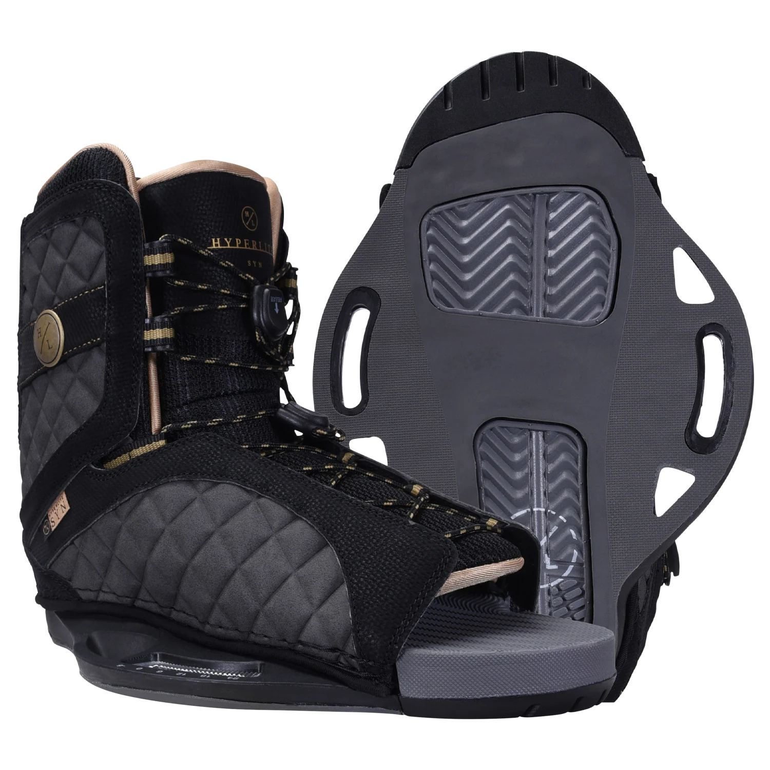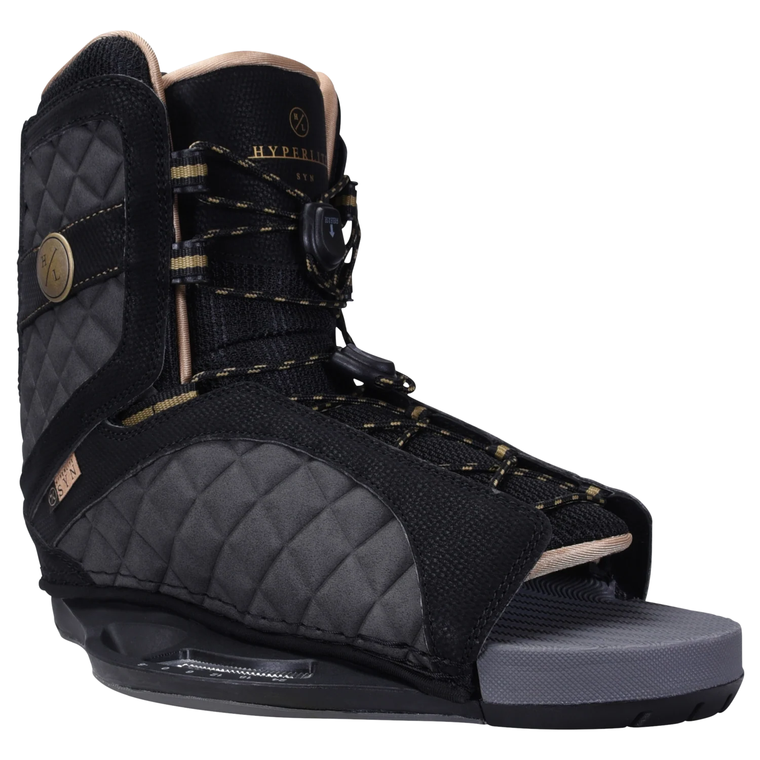 Until now, there has never been a binding in the Hyperlite line designed specifically for a female rider. The new Syn binding is built from the ground up to fit and function for ladies looking to take their riding to the next level. The Syn has reduced internal volume and a lower cuff to accurately fit a woman's foot and calf. The dual quick cinch lace system allows for fine tuning of boot tension. All of these features are built atop our Low Pro Plate System which puts the rider closer to the deck of the board for maximum feel and control.