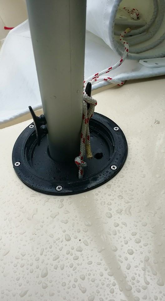 Boomless Marconi Rig with 4 batten window sail, daggerboard in a centered trunk, and a European-designed kick-up rudder. The mast is 2-part, stay-less, and can be stored onboard even while rowing. The sail is Raid and Everglades Challenge approved, with quick up and down setting and reefing points.