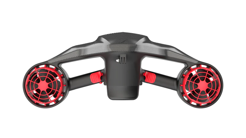 Experience the thrill of underwater cruising with the NAUTICA MARINE 500 Carbon Seascooter This dual-thruster marvel propels you at speeds of up to 3.5 mph (5.6 km/h). Effortlessly switch between three rotational speeds to optimize your energy, allowing for extended dive or snorkel sessions!