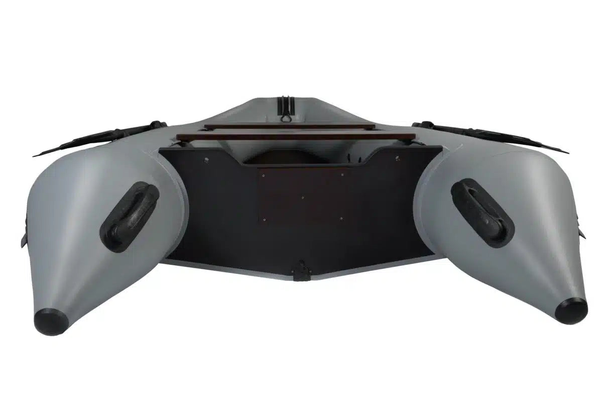 The design of the boats has a U-shaped cylinder with a glued-in transom made of waterproof plywood. The cylinders are divided into 3 pressurized compartments and an inflatable keelson. The patented shape of the boat, thanks to the full sheet cutting of the fabric, has 4 circular and 2 longitudinal welds, which ensures high tightness of the cylinders.