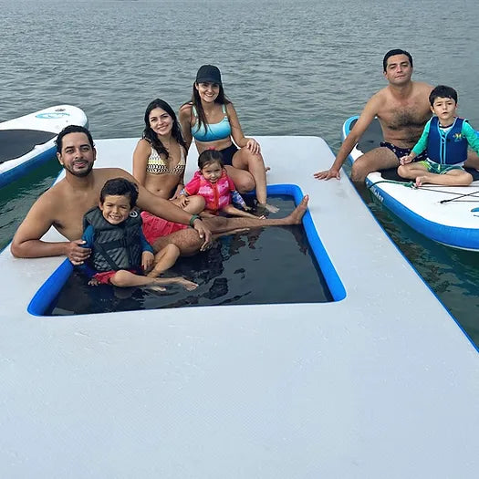 Look no further, as the Paradise Splash Pad inflatable pad is an excellent choice for floating mats on the lake. This versatile pad allows you to lounge on an inflatable swim pad while simultaneously cooling off in the refreshing Paradise mesh center. Kids and moms adore the mesh center, while dads appreciate the ease of use.