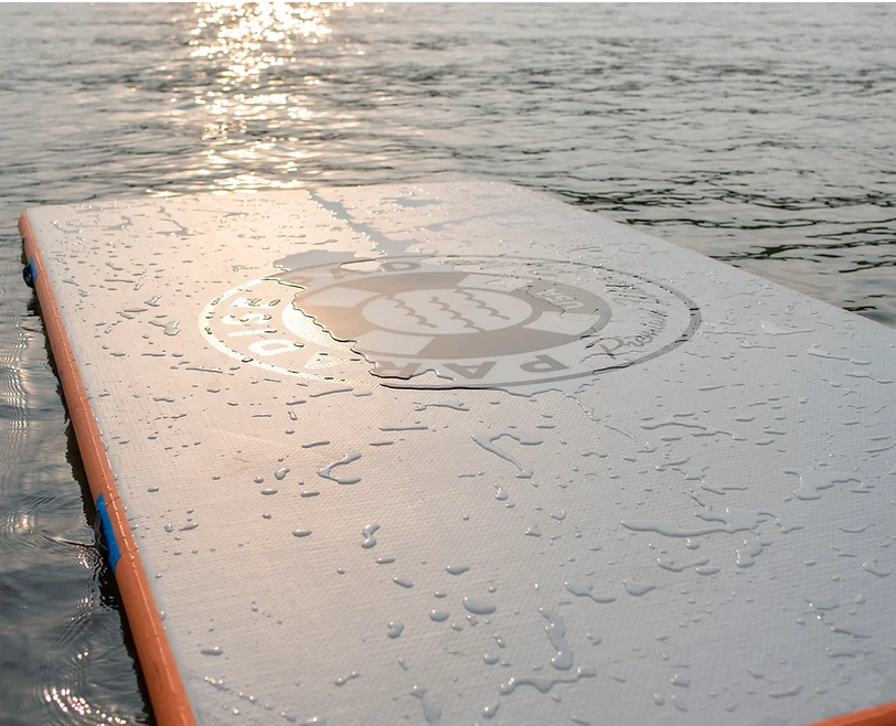 Inflates/Deflates in minutes Rigid & sturdy floating dock platform Enhanced sidewall protection using best technology available Portable - take it anywhere Heavy duty carrying handles Integrated stainless steel d-rings bottomside for anchoring Stores in boat compartments/small spaces Paradise Tips: For fast & easy inflation, check out our electric pumps