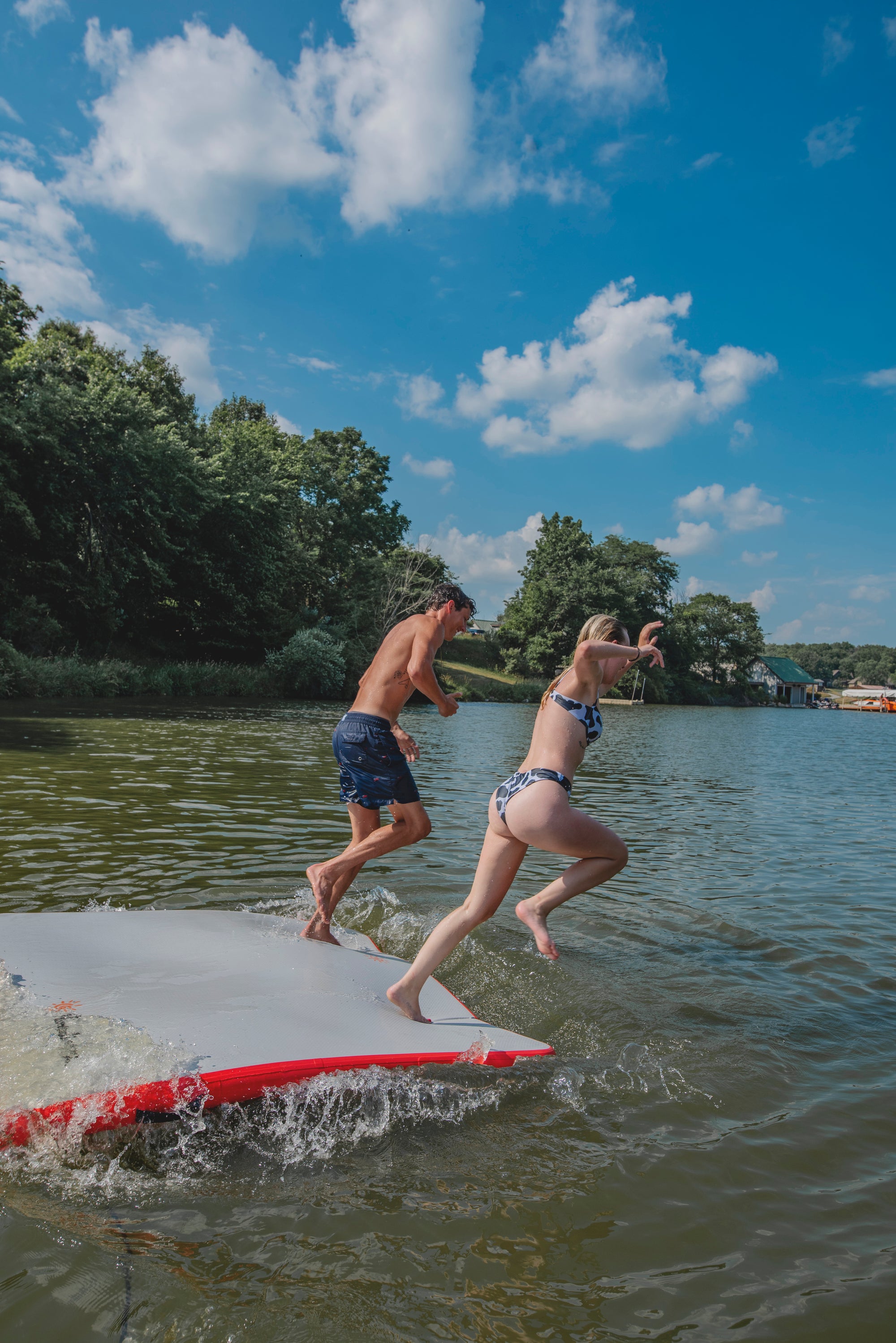 Experience the ultimate upgrade to your summer with the Paradise Pad Inflatable Lake Pad. This remarkable floating inflatable dock offers unrivaled stability and durability, earning numerous awards for its premium quality products. If you're in search of the perfect water pad for your family, look no further than the Paradise inflatable pad.