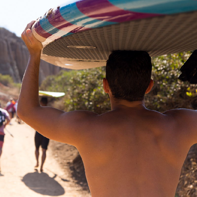 How do you make something that weighs 25lbs feel like 5lbs? Put a good handle on it. POP SUP boards feature our very own ergonomically recessed handles with ribbed finger grips for extra carrying comfort. No more finger cramping, the handle is designed to transfer the weight of the board from your fingertips to your hand and arm. We carefully position the handles on the center of our boards to give riders optimal balance, making our boards feel weightless carrying them to and from the water.