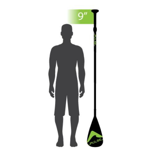 The top of the handle should measure 9” inches above the height of the rider. Example: a 5’7 (67”) person should size the paddle to height (67”) + 9” = 76”.