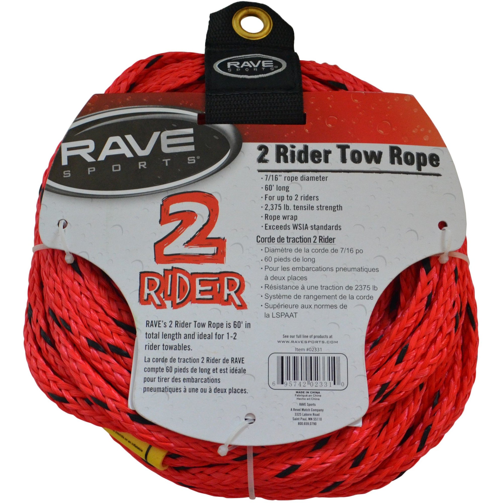 RAVE's 2 Rider Tow Rope features a 7" loop at each end of the rope for easy connection to RAVE's Quick Connect Tow Point and your boat pylon. Perfect for towing one or two-rider boat tubes.