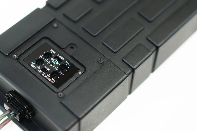 Featuring 500 watts of force via a single channel of sound, the Roswell SD 500.1 Compact OFFROAD Amplifier provides purpose built power for your subwoofer. IP66 rated to keep cranking in extreme conditions; crossover controls, fully conformal-coated PCB’s, and differential RCA inputs deliver an audio environment where clarity is king.