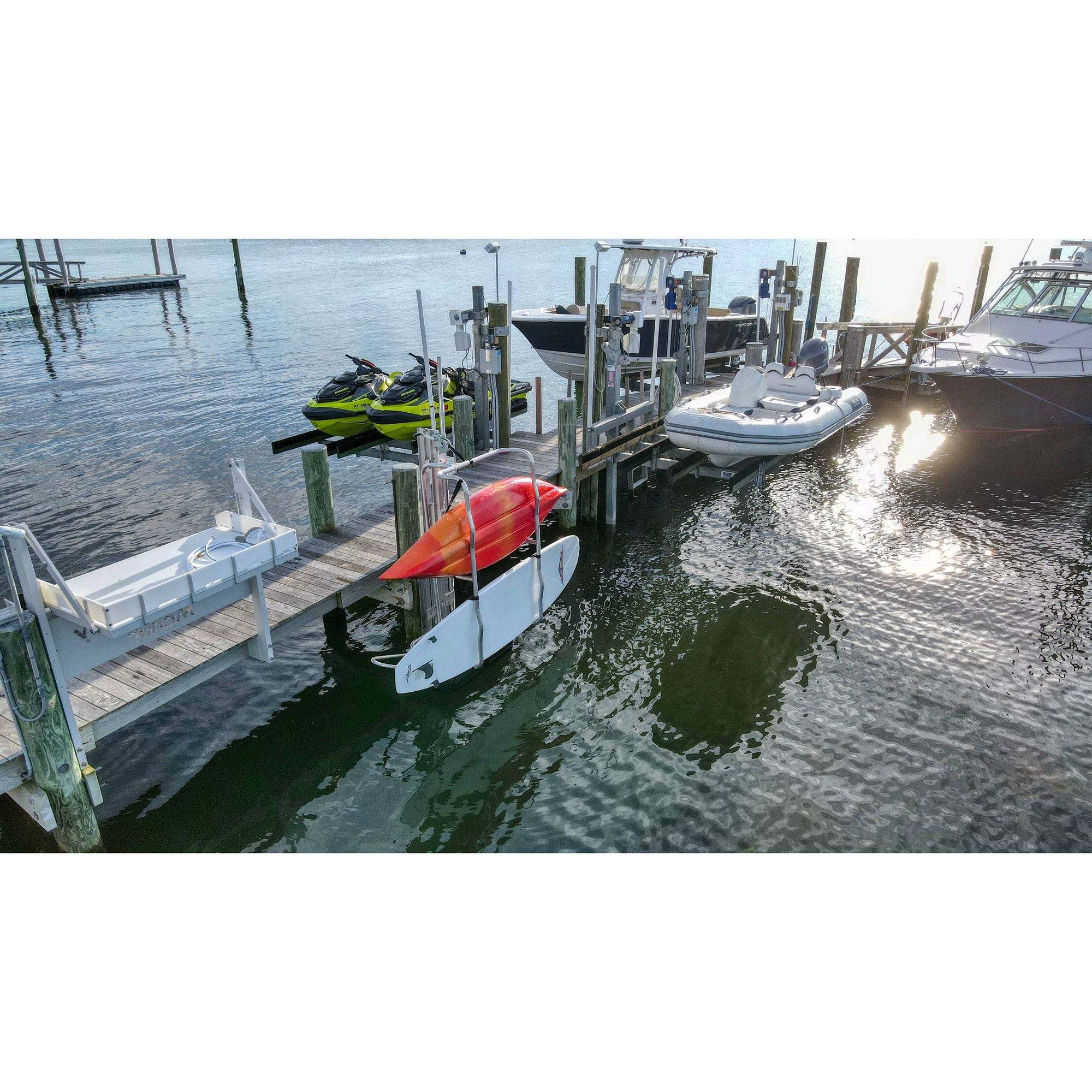 Safely secure your small watercraft above the water and save that valuable dock space. Simply mount the Seahorse Docking Fixed Dock Double Kayak Launch And Stow it to a fixed dock or seawall.