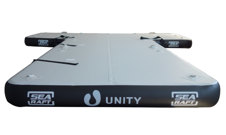 We carry several standard-sized T- or M-shaped Jet Ski Docks, ranging from 1 to 6 skis and available in a one-piece or modular setup. SeaRaft Jet Ski Docks come as standard with Water Ballast Bags, Soft Grip Carry Handles, D-rings, and Rubbing Strake all the way around. All are packed in a protected storage bag.