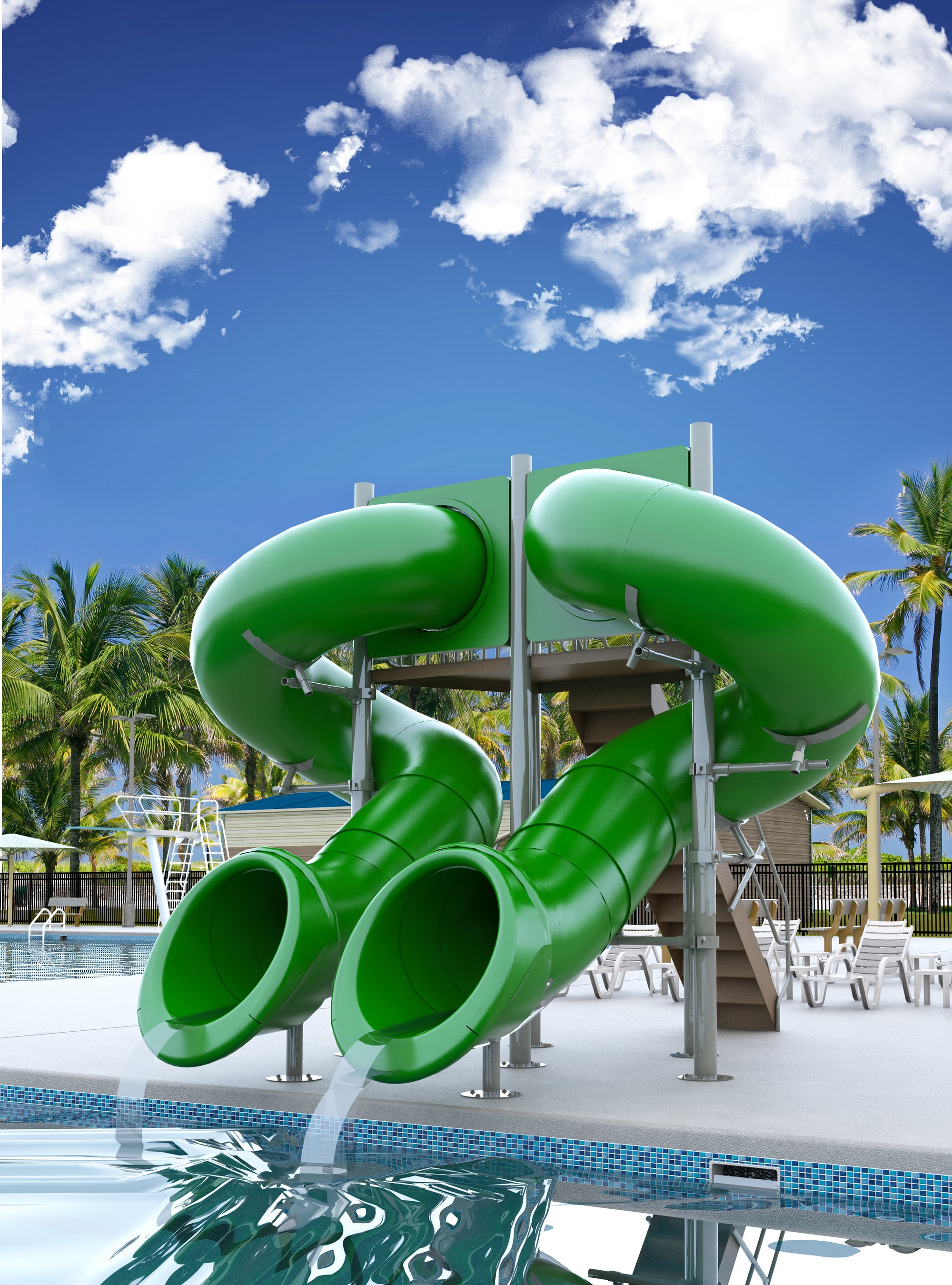 This colorful and highly visible, Spectrum Aquatics Single Flume And Double Flume Poolside Slides will give your pool a fresh look that will last for years to come. With safety and rider experience are the top priority, these slides boast slip-resistant steps and decking, plus a variety of twists and turns to accommodate all facilities.