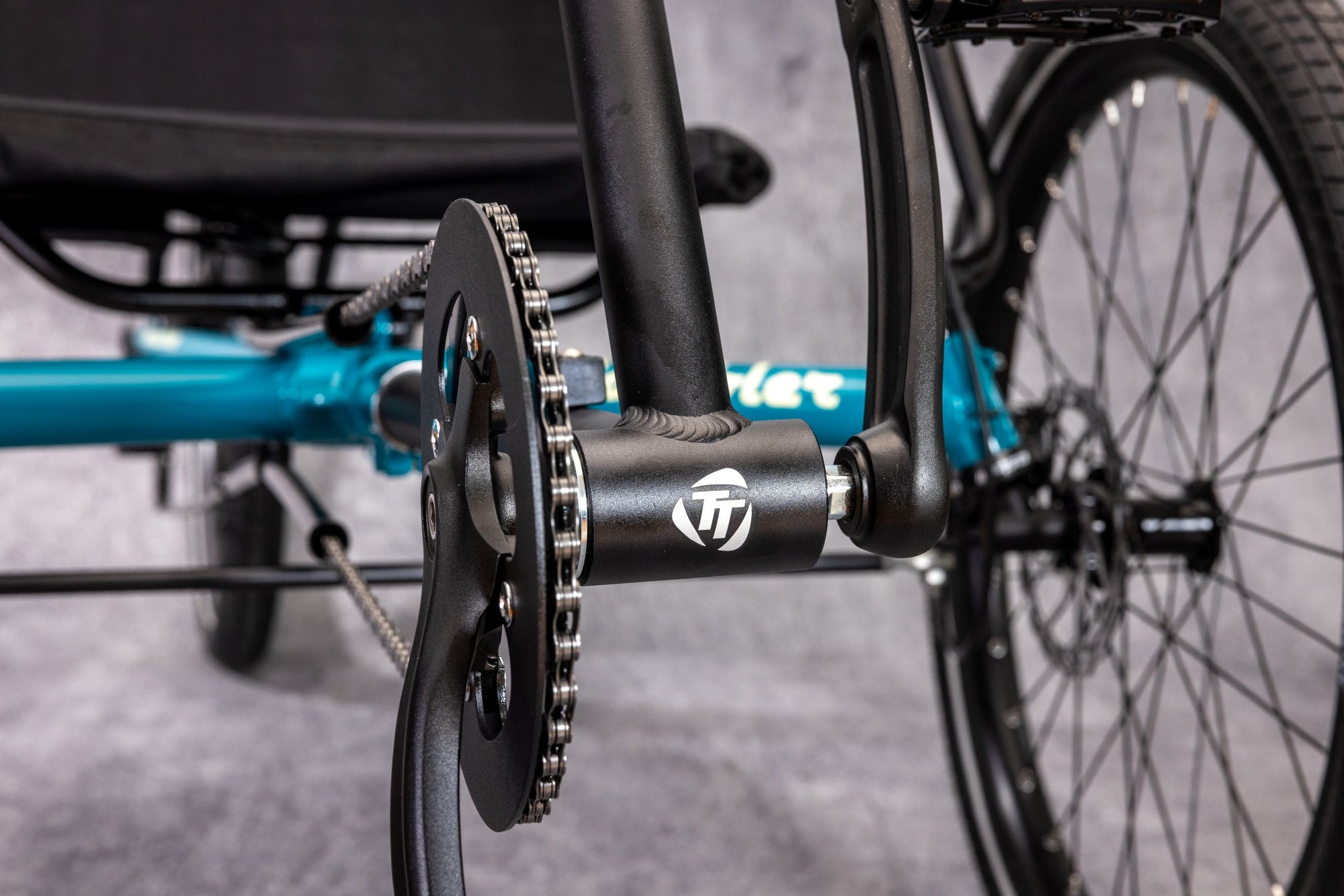 Allows others to use the trike by adjusting the boom and taking up or paying out the chain as the rider needs.