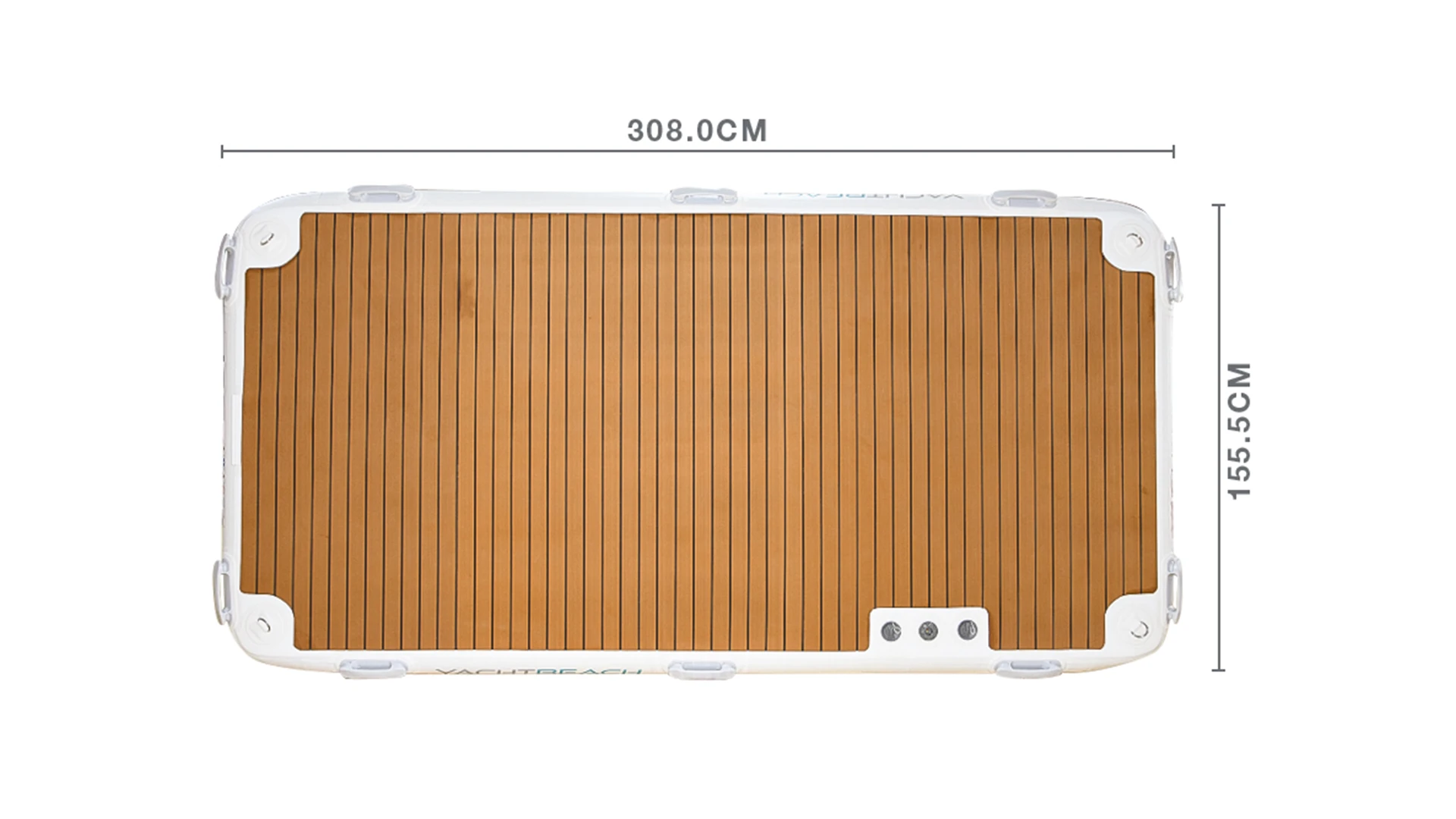 The highlight of this Yachtbeach Platform 3.08 Premium Teak is the pleasant EVA teak deck. It has a soft, comfortable top surface, and a non-slip, UV and saltwater-resistant surface.
