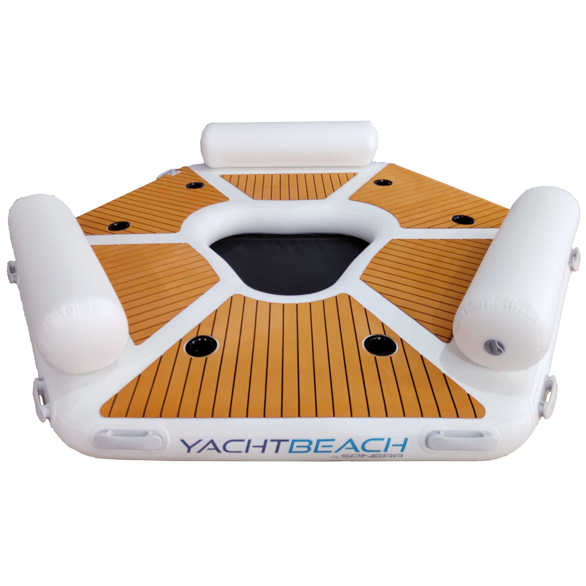 Yachtbeach Relax Zone 2.50 Hex Platform are made of UV and saltwater-resistant drop-stitch material with 7.9" thickness and flexible EVA teak.