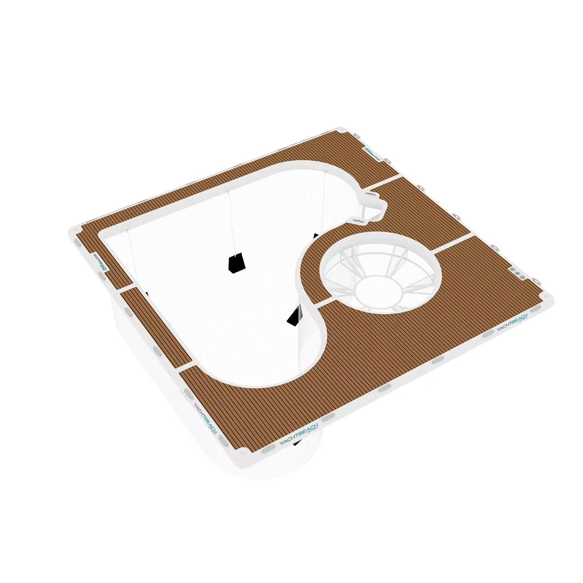 Spend relaxing moments with your loved ones behind your yacht and bathe in the sea without being disturbed by unpleasant jellyfish and other sea creatures and marine particles with the Yachtbeach Inflatable Superior EVA Teak Deck Dropstitch Pool 6.16.